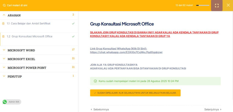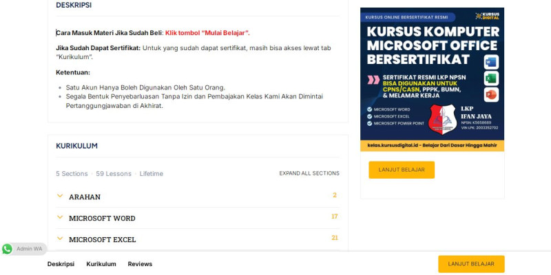 Situs Belajar MS Office Online Resmi Bersertifikat LKP